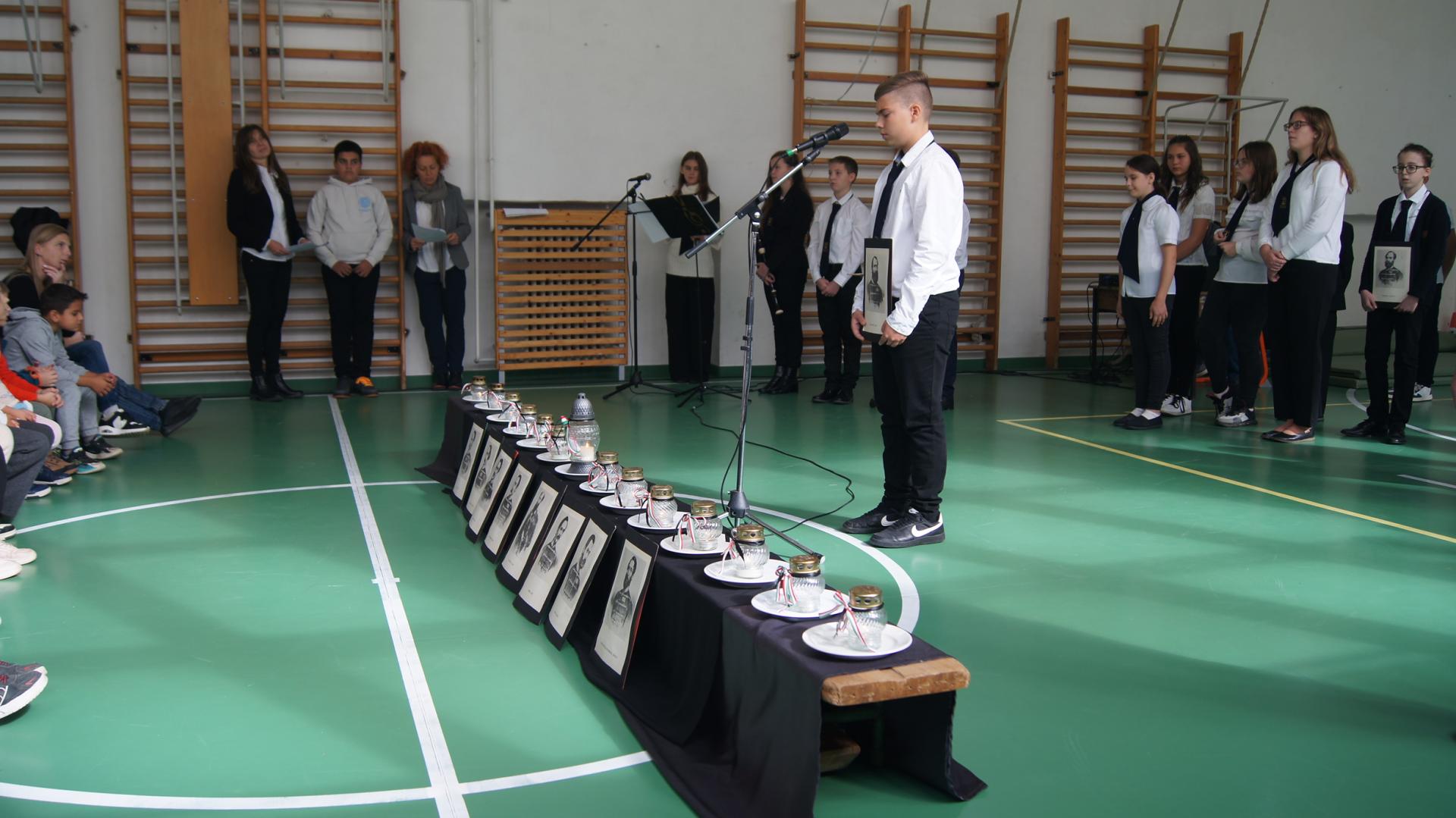 Október 6-án méltó módon emlékezett meg iskolánk az aradi vértanúk emléknapjáról, a 7. évfolyamos diákok és az énekkar műsorával.
