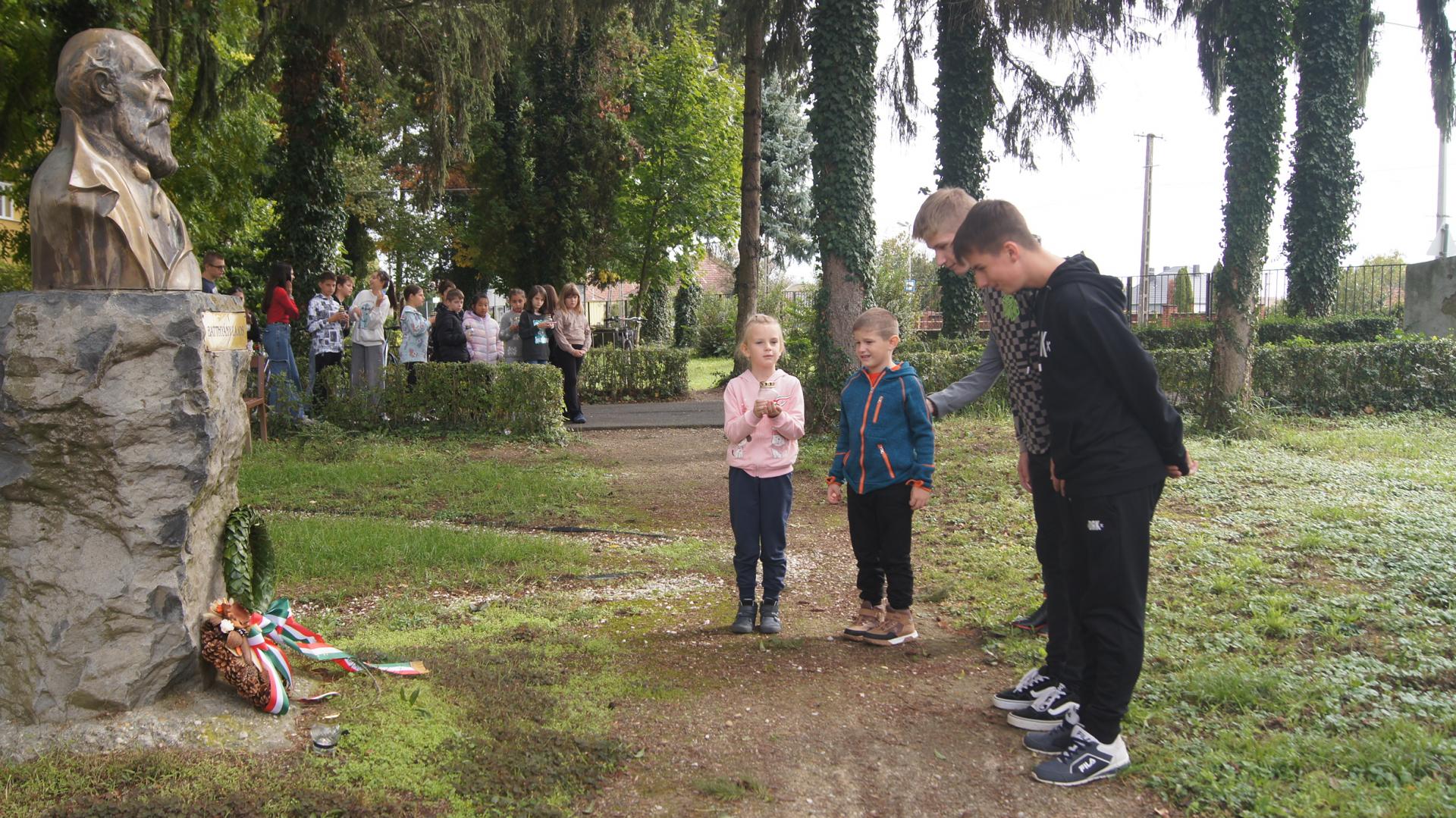 Az ünnepség végén az osztályok képviselői, az iskola vezetősége, valamint városunk polgármestere, alpolgármestere helyezték el a megemlékezés koszorúit és mécseseit a Batthyány Lajos szobornál.